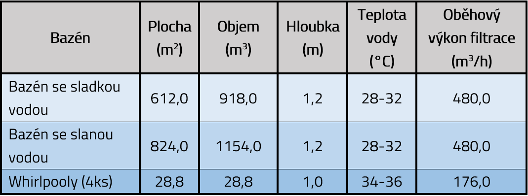 Celkový objem bazénů:2100,8 m3 |