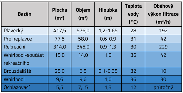 | Celkový objem bazénů:1016,3 m³ |